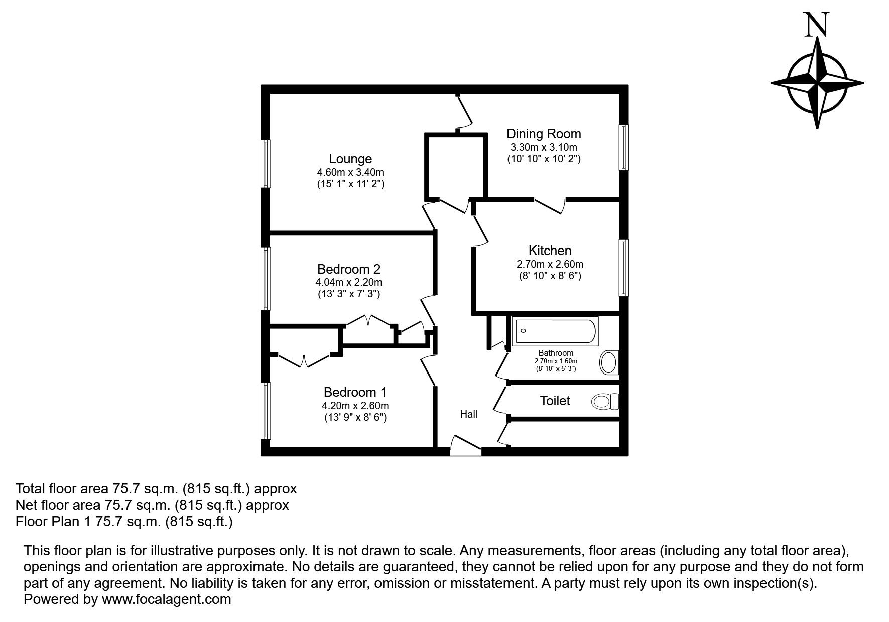 Communal entrance, entrance hall, living room, dining room, kitchen, 2 bedrooms, bathroom, WC