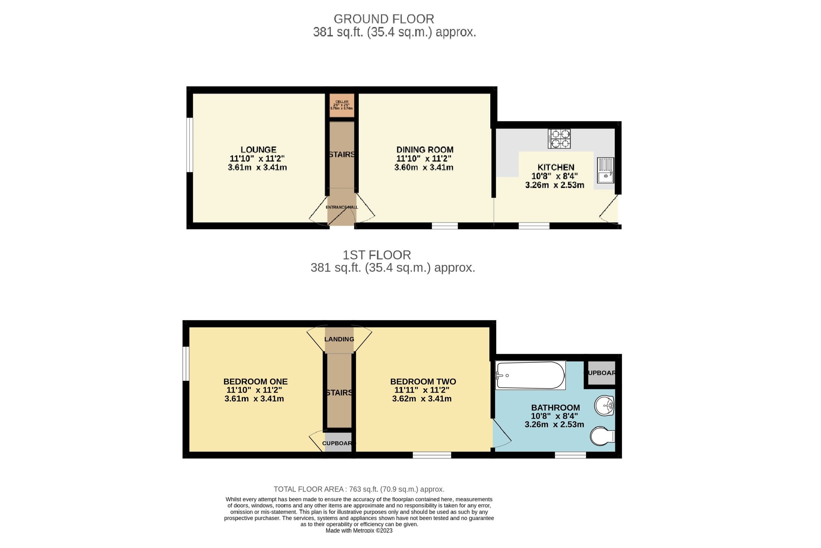 2 bedrooms, bathroom