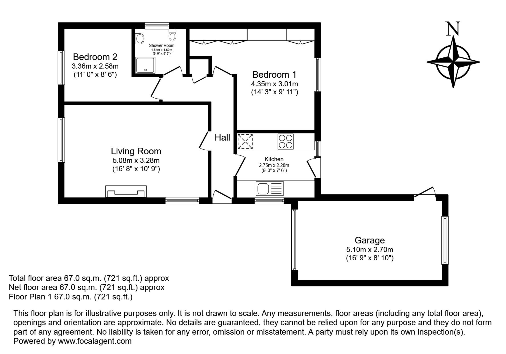 Entrance hall, living room, kitchen, 2 bedrooms, shower room