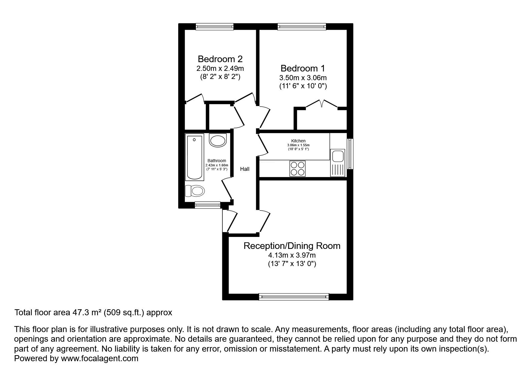 Entrance hall, living room, kitchen, 2 bedrooms, bathroom