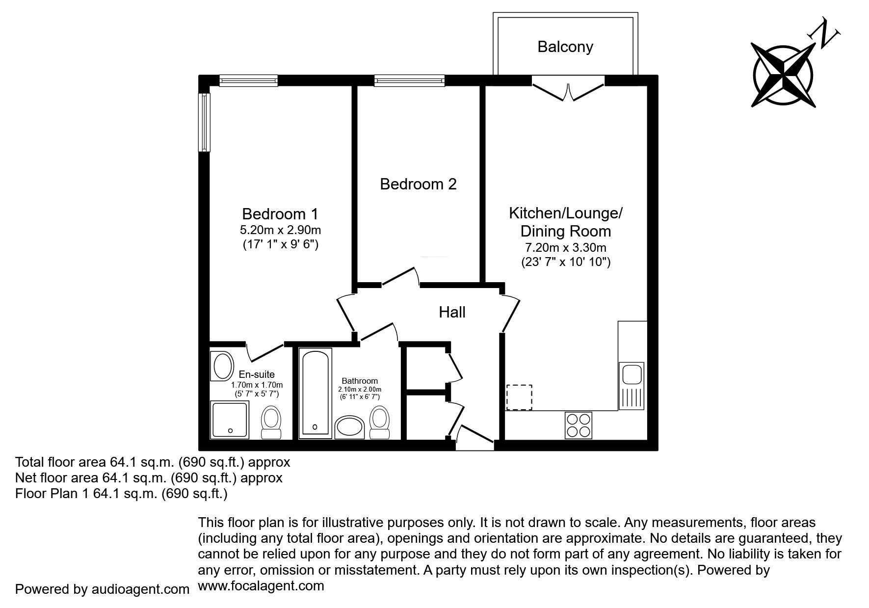 Entrance hall, living room with balcony, kitchen, 2 bedrooms, en-suite & separate bathroom. Please Note: the following rooms have under floor heating - entrance hall, main bathroom, bedroom one and en suite.