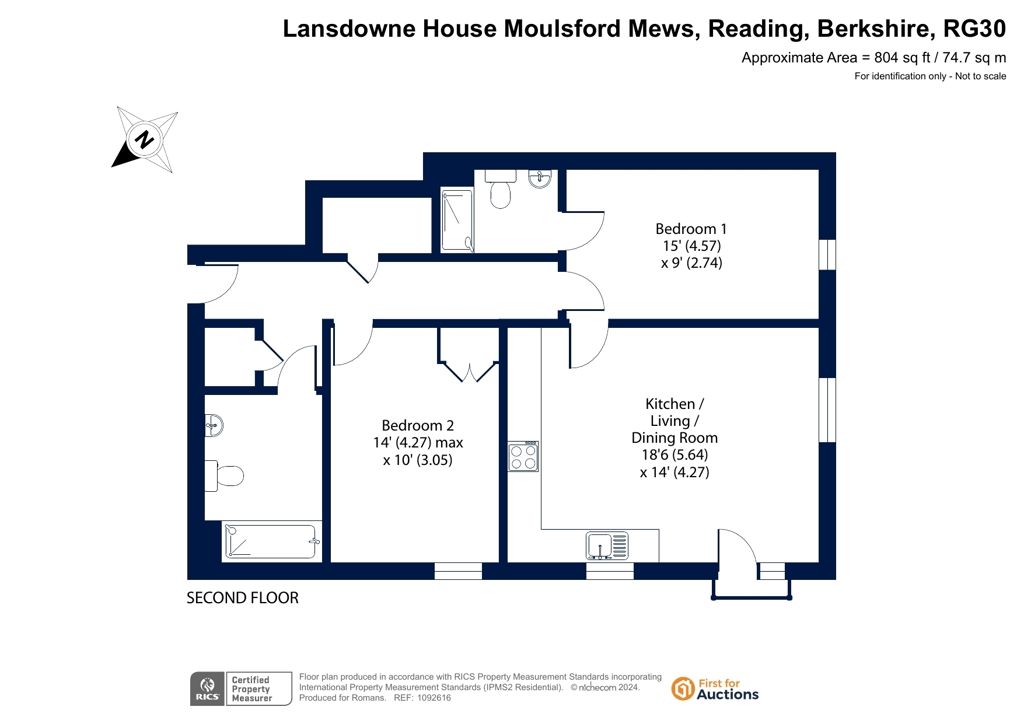 A vacant 2 bedroom, 2 bathroom, second floor apartment with allocated parking, located in a popular residential area of Reading close to the town centre and providing good access to Reading station. Ideal for owner occupation or letting investment with an estimated rent of £1,450 - £1,550 PCM depending on condition, gross yield 10.9% - 11.6% PAX.