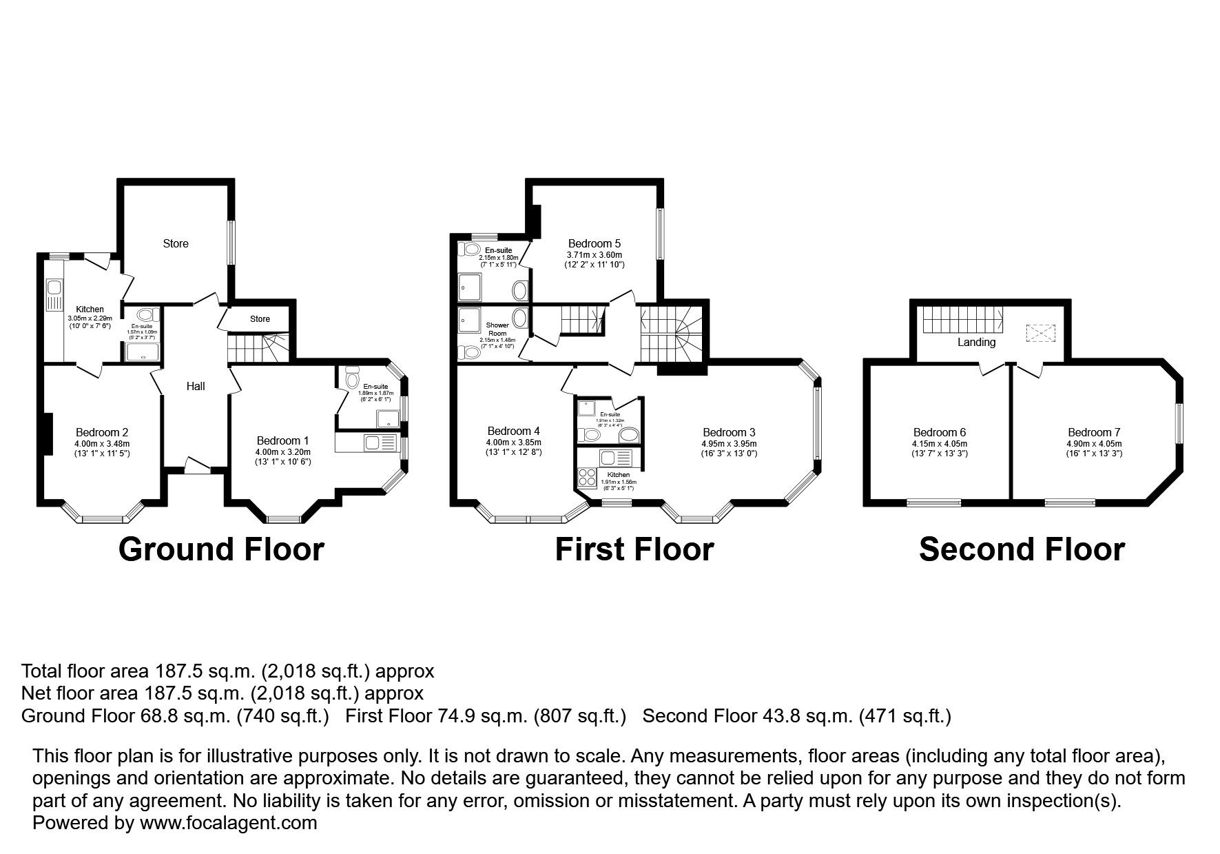 Landing, Flat 3 bedroom/living room, en-suite, Flat 4 Bedroom/living room, Flat 5 bedroom/living room with kitchen are, en-suite, shower room