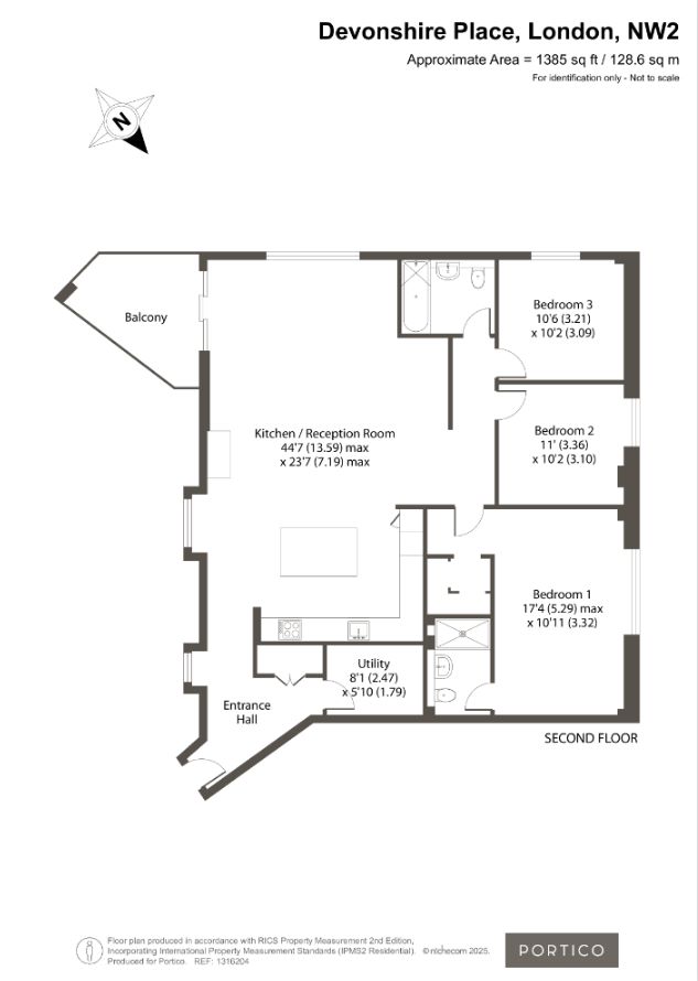 A vacant 3 bedroom second floor apartment of approximately 1,385 sq ft, forming part of a modern boutique development of just nine units, benefitting from a share of the Freehold.