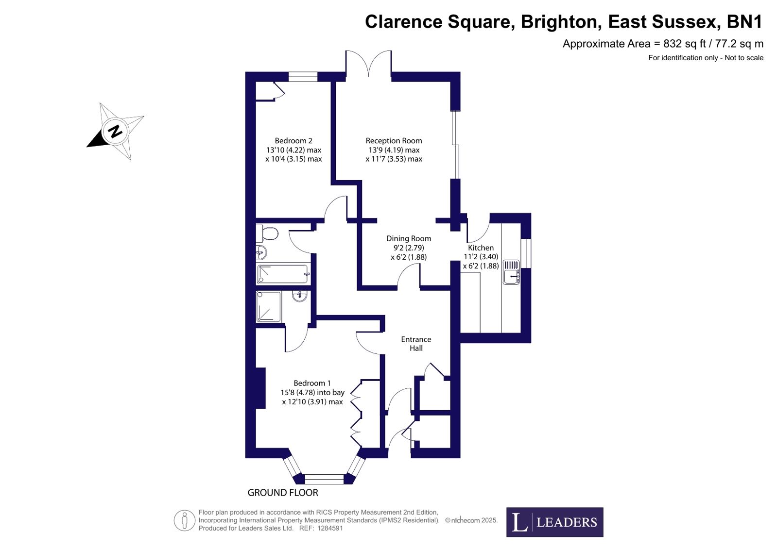 This spacious two-bedroom, two-bathroom garden flat offers accommodation extending to over 830 sq ft and is arranged on the basement level of a period building within the highly regarded Regency Square Conservation Area. Enjoying pleasant views across the landscaped central gardens, the property is presented in generally good condition and requires only minor improvements, making it a good opportunity for buyers seeking a well-located home or investment.