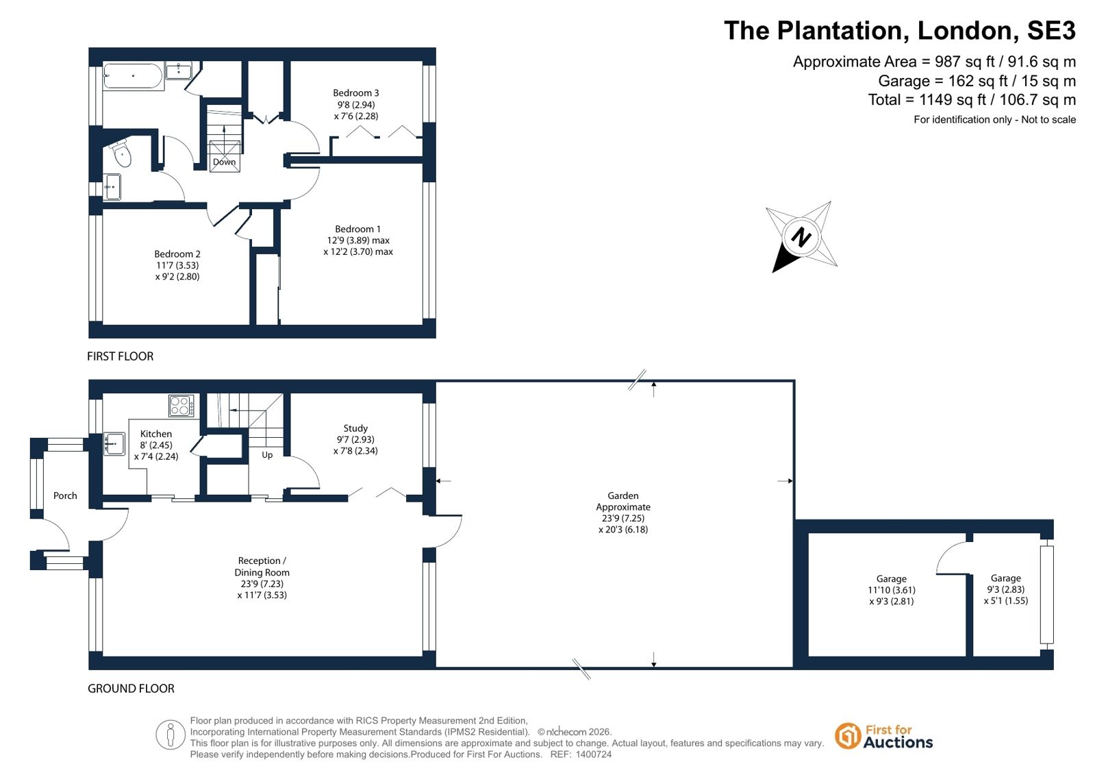 The accommodation comprises a large double reception room, study and kitchen to the ground floor, with three bedrooms, bathroom and separate WC to the first floor. Externally the house benefits from a secluded courtyard garden, private rear garden, residents’ parking and a garage to the rear.
