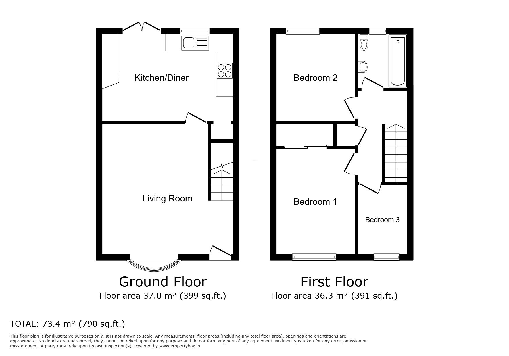 The accommodation is arranged over two floors and offers living room, kitchen-diner, three bedrooms and a bathroom. Outside, the rear garden offers far reaching views with residents parking to front.