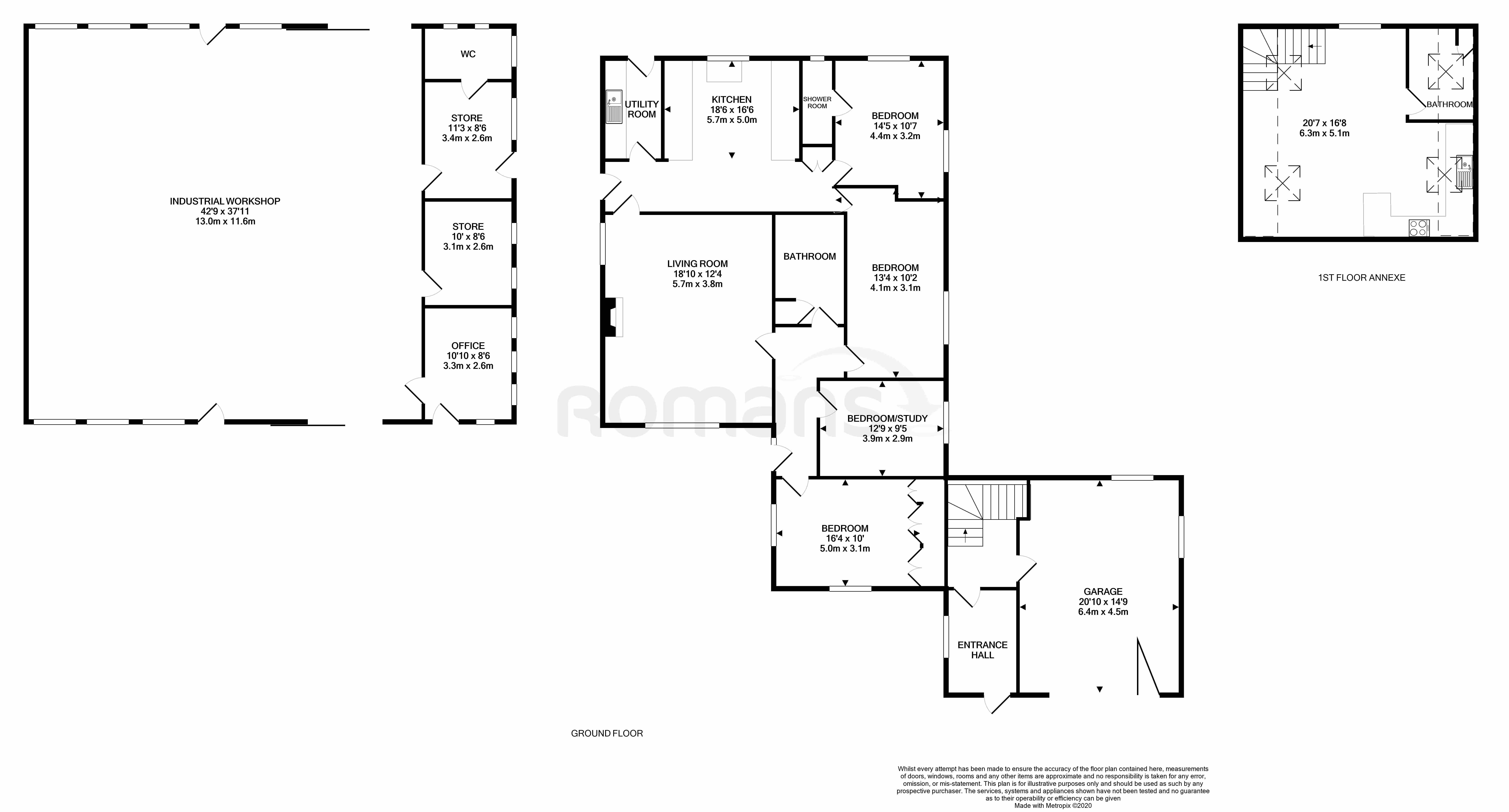 Ground floor: Entrance hall, living room, kitchen, utility room, 4 bedrooms one with en-suite shower room, bathroom, attached garage, entrance hall to annexe accessed externally.