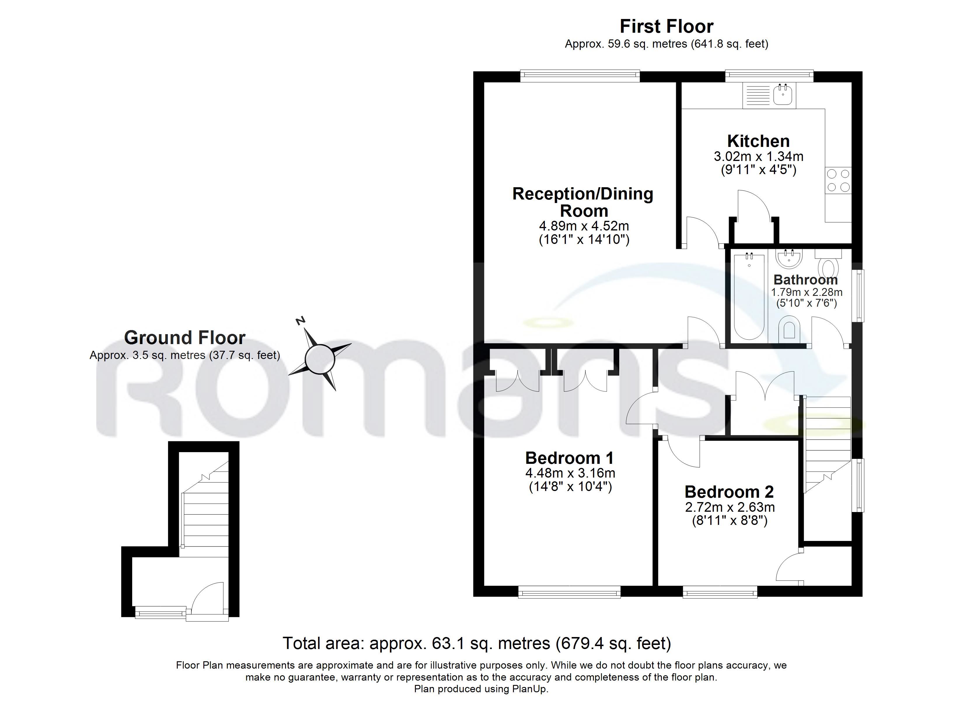 Entrance hall, living room, kitchen, 2 bedrooms, bathroom