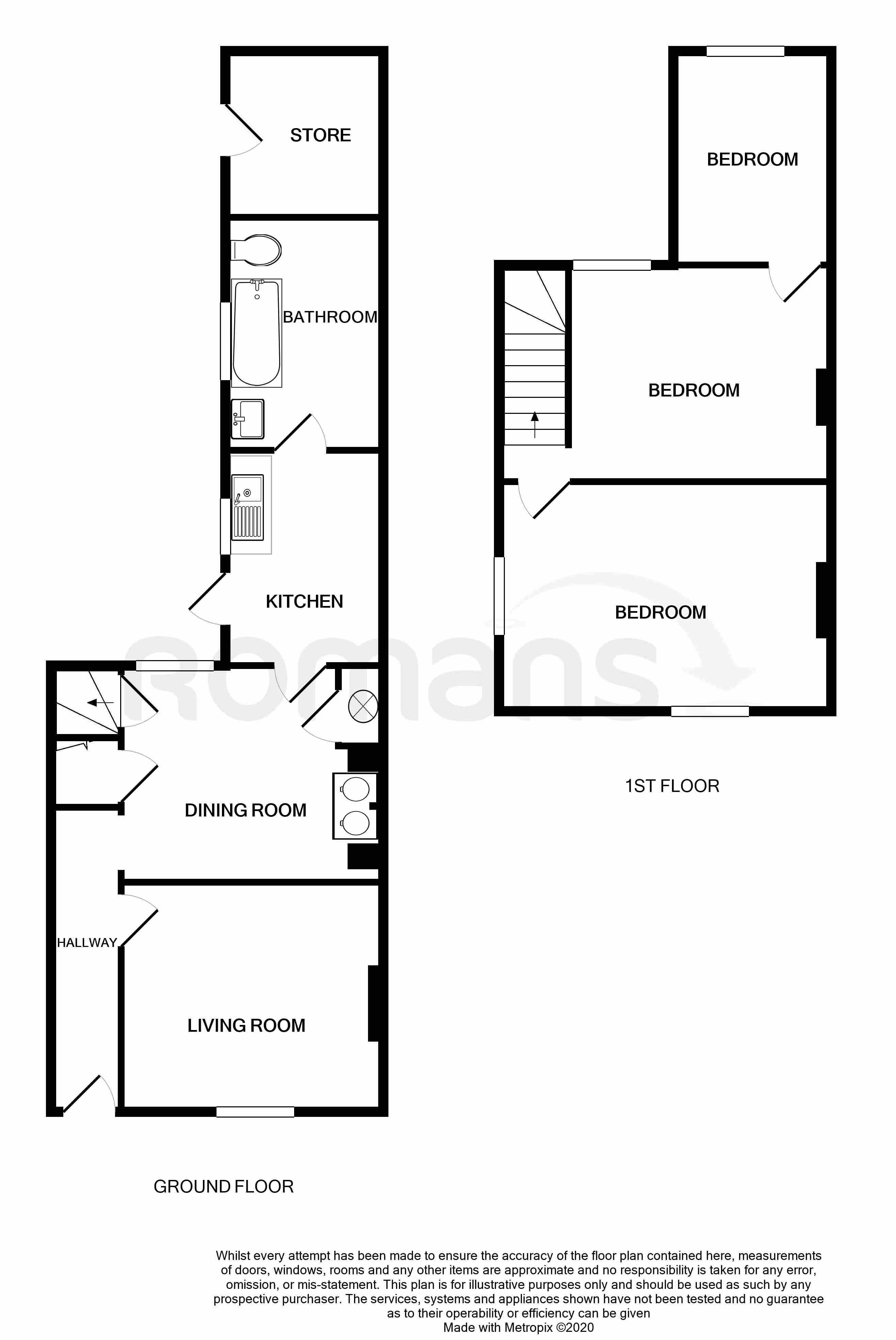 First floor: 3 bedrooms (bedroom 3 accessed via bedroom 2)