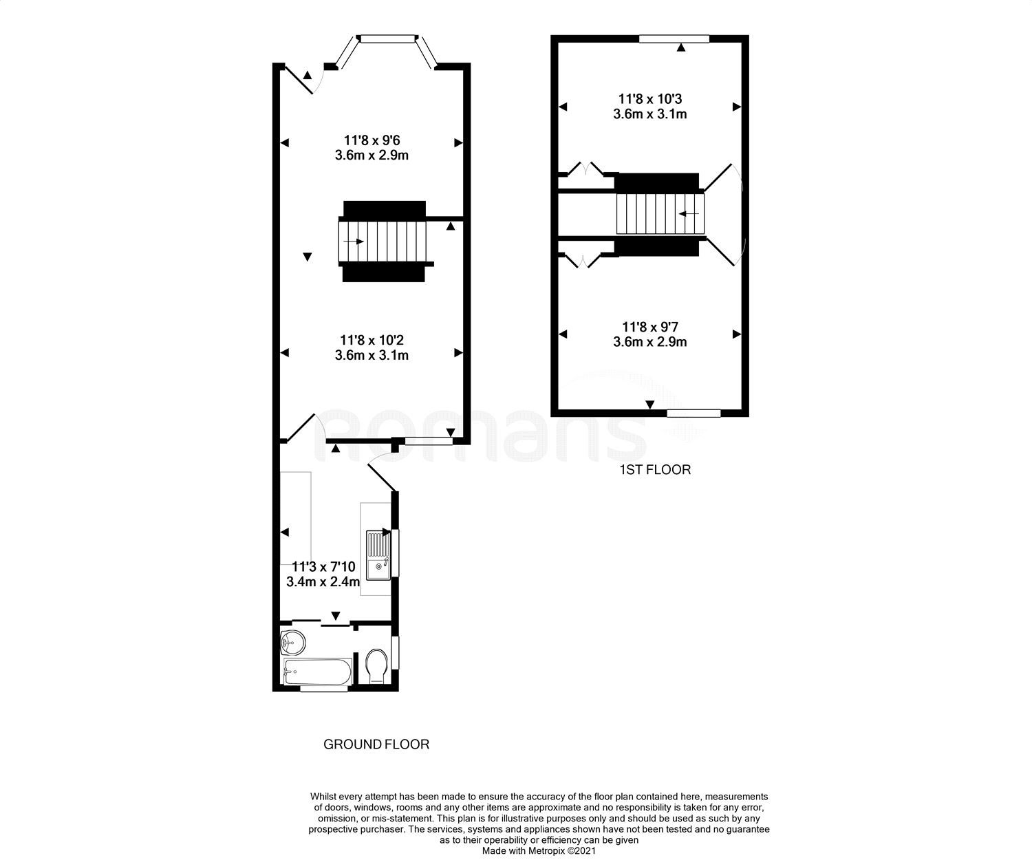 First floor : 2 bedrooms