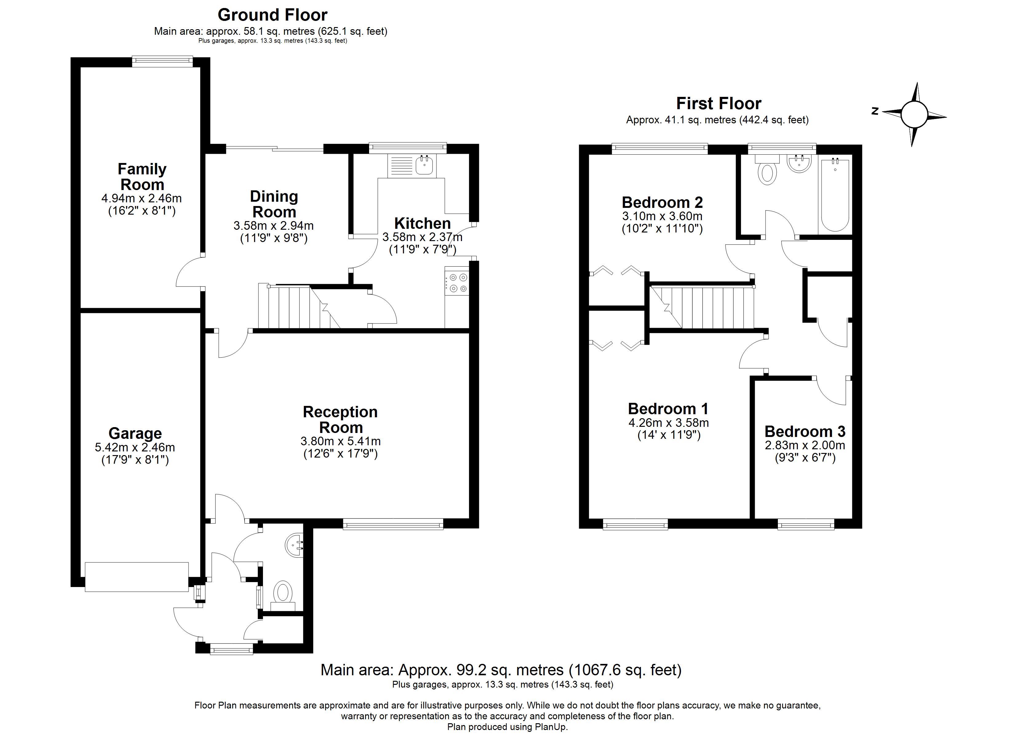 Front garden, driveway parking, garage, rear garden