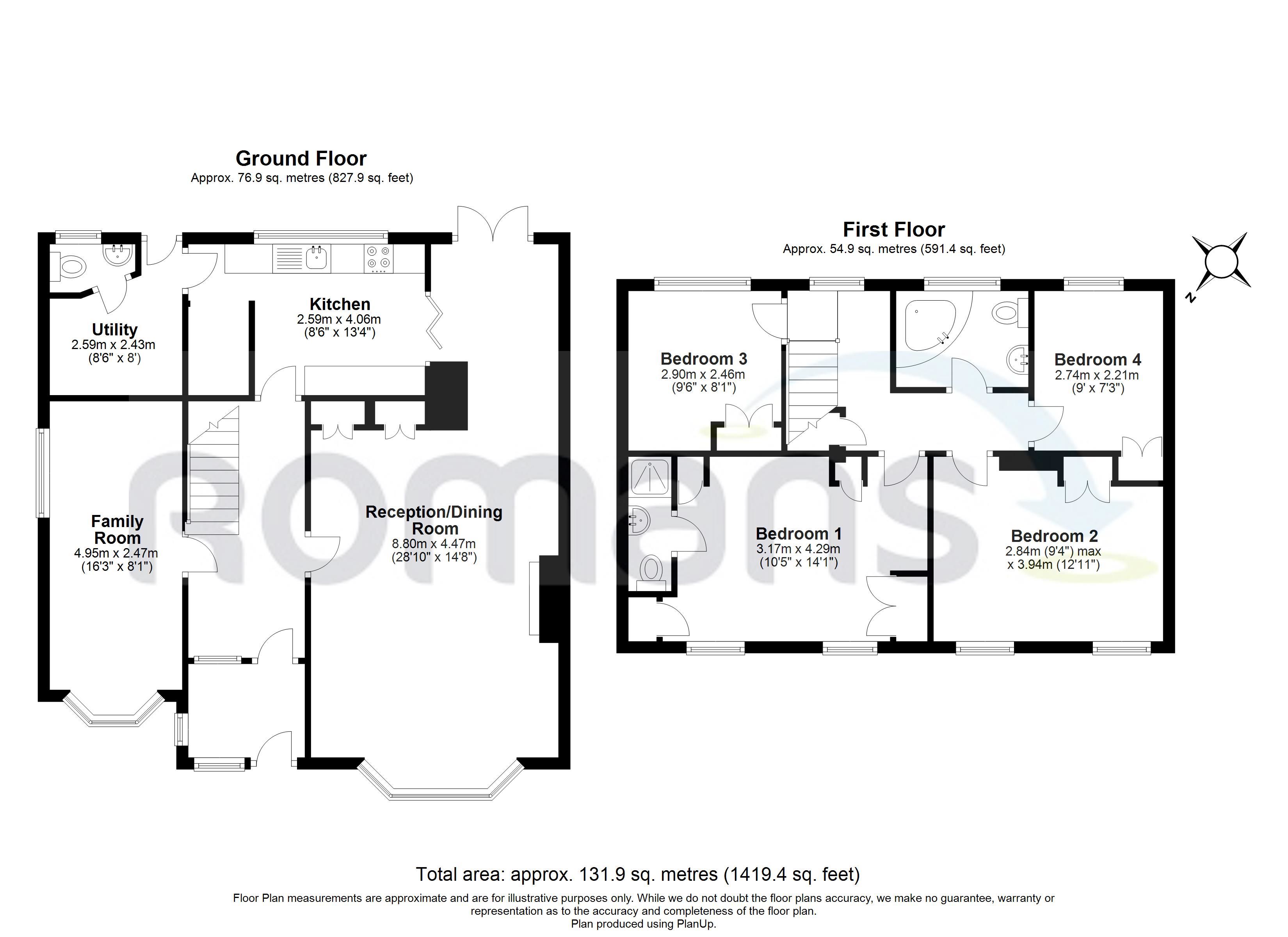 Bedroom 1 with en-suite shower room, 3 further bedrooms, bathroom