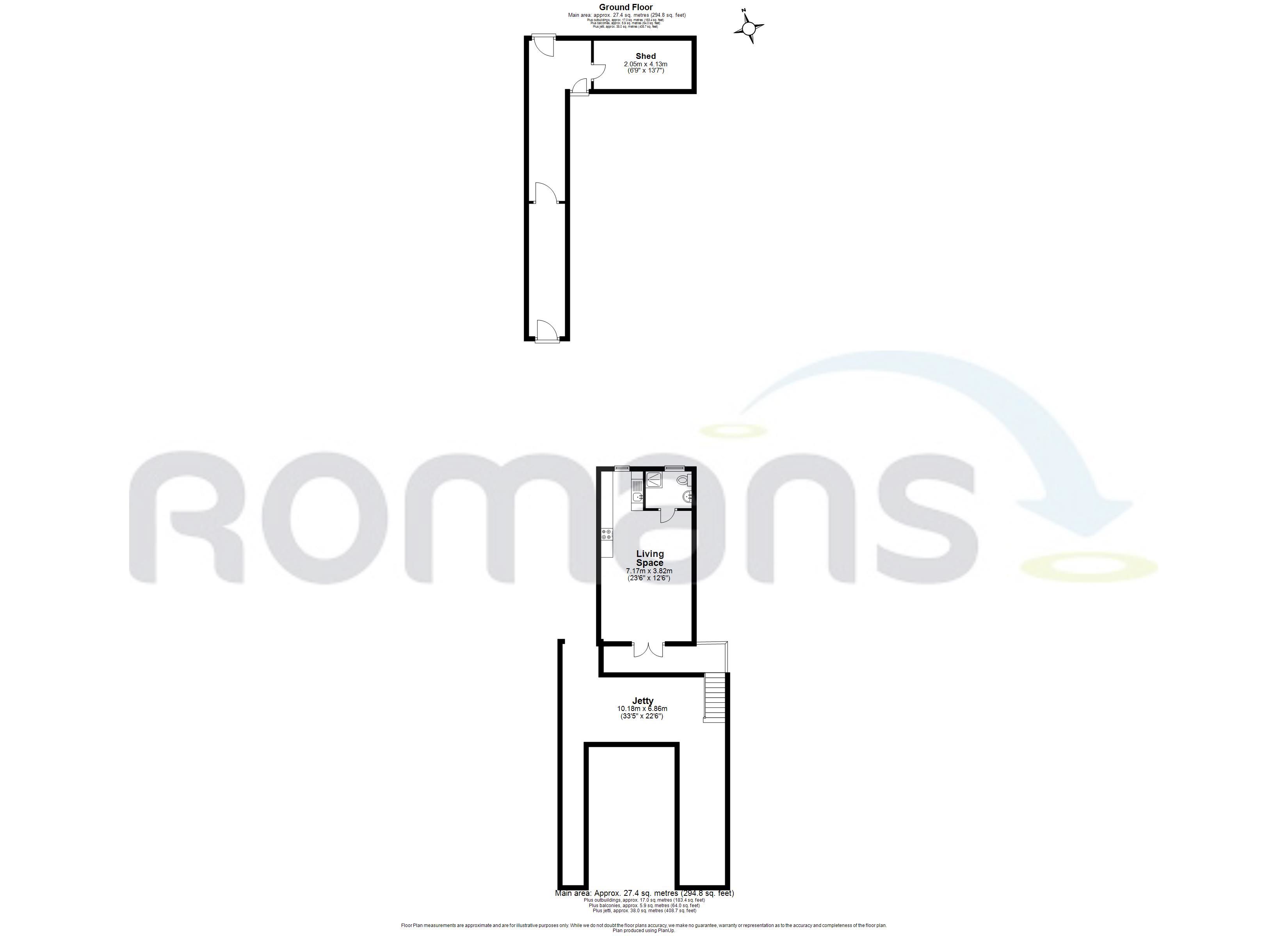 Private parking space for 4 to 6 cars. A locked gate provides access to gardens and river Thames via a raised covered walkway. Storage shed. Gardens enclosed by fencing with soft fruit trees. Aluminum frame and canvas awning provides a covered entertaining, or storage space. At the rivers edge there is a paved sun terrace.
