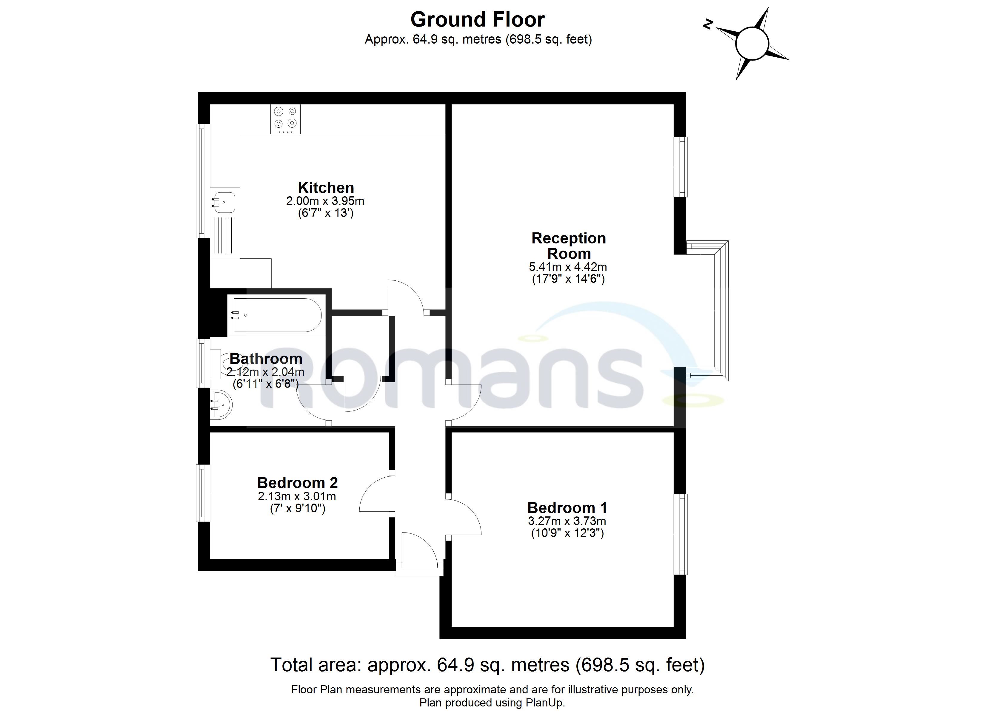 Entrance hall, living room, kitchen, 2 bedrooms, bathroom