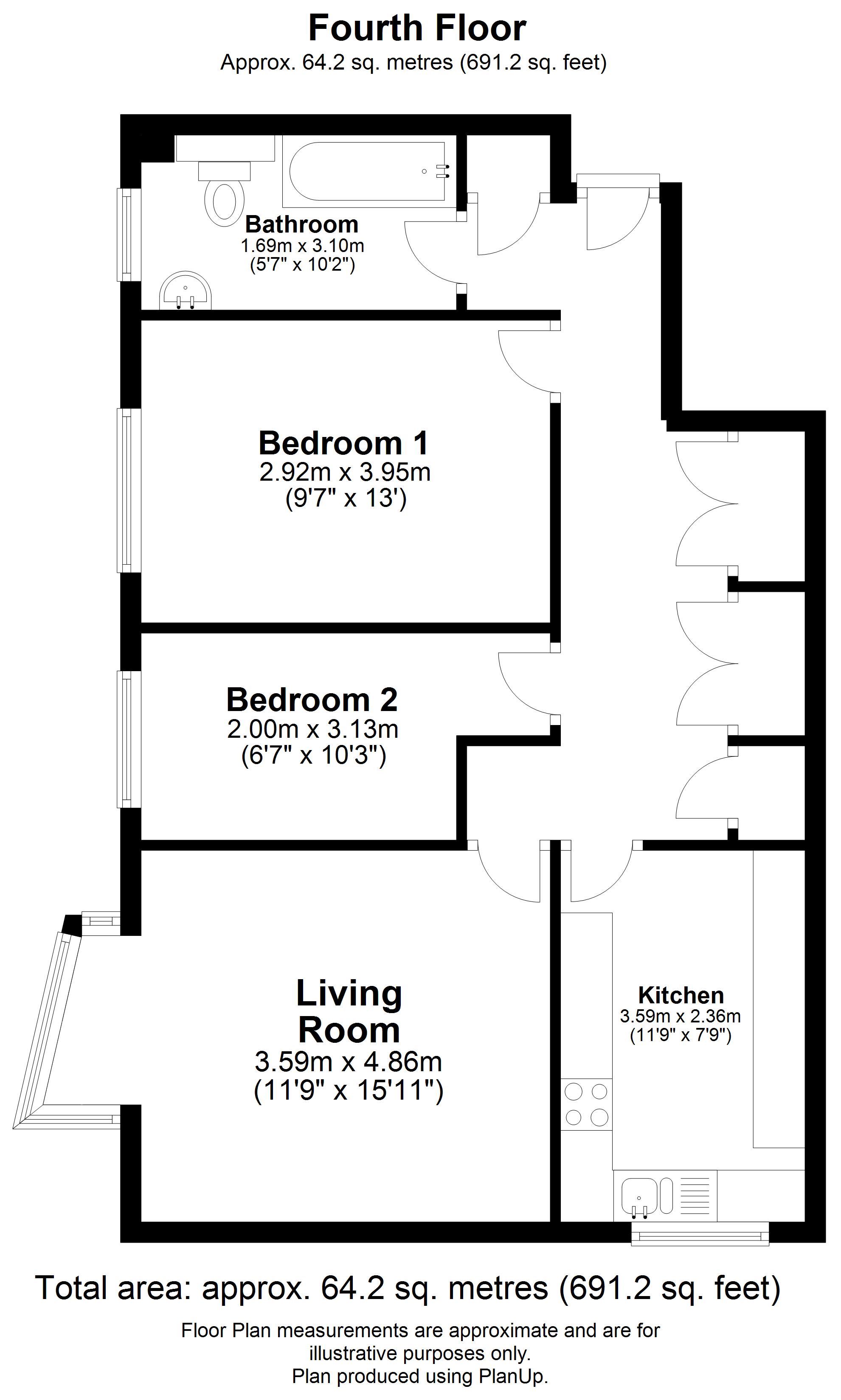 * Fourth Floor * two bedrooms * living room * kitchen * bathroom