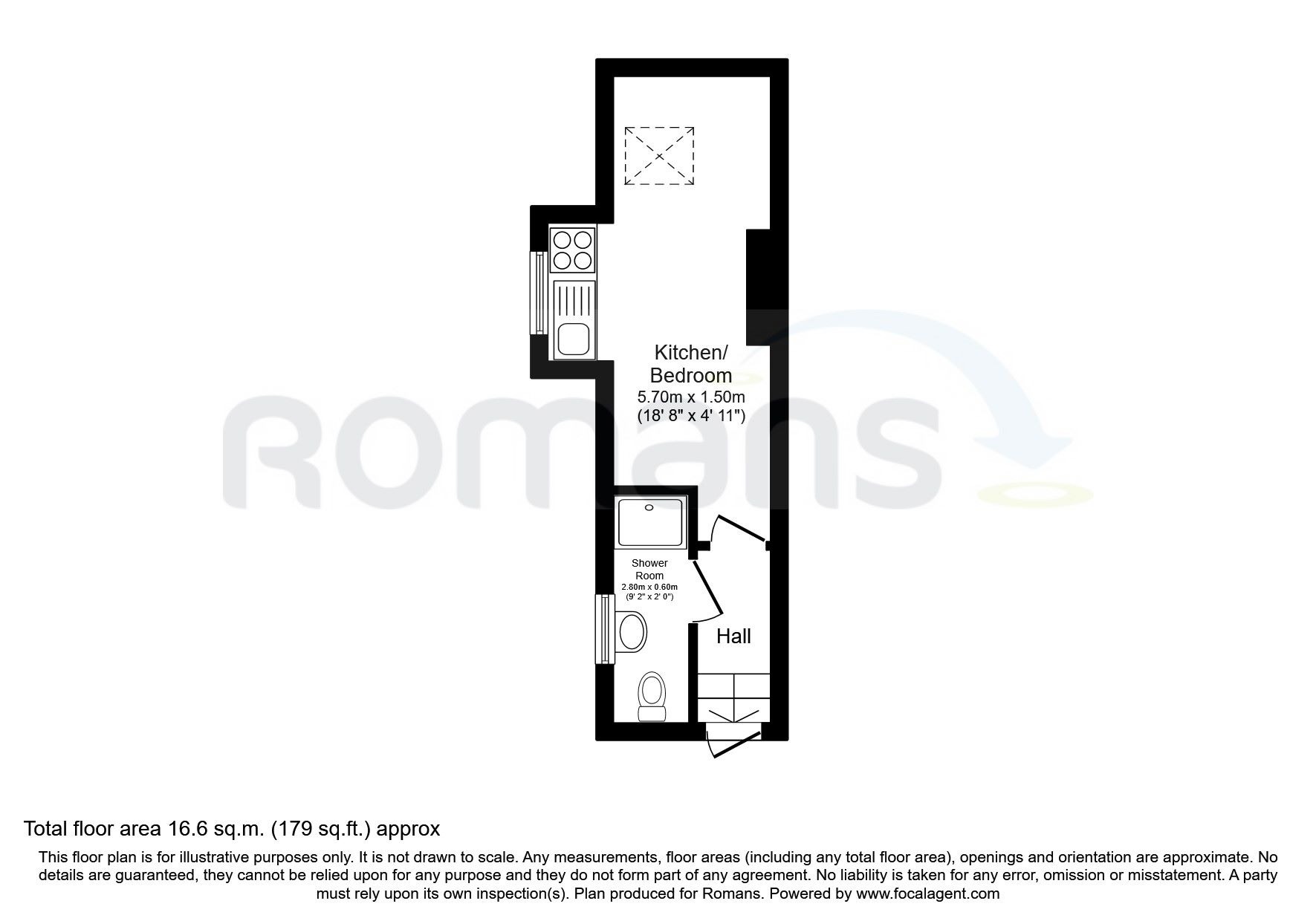 Entrance hall, studio bedroom with kitchenette, shower room and WC