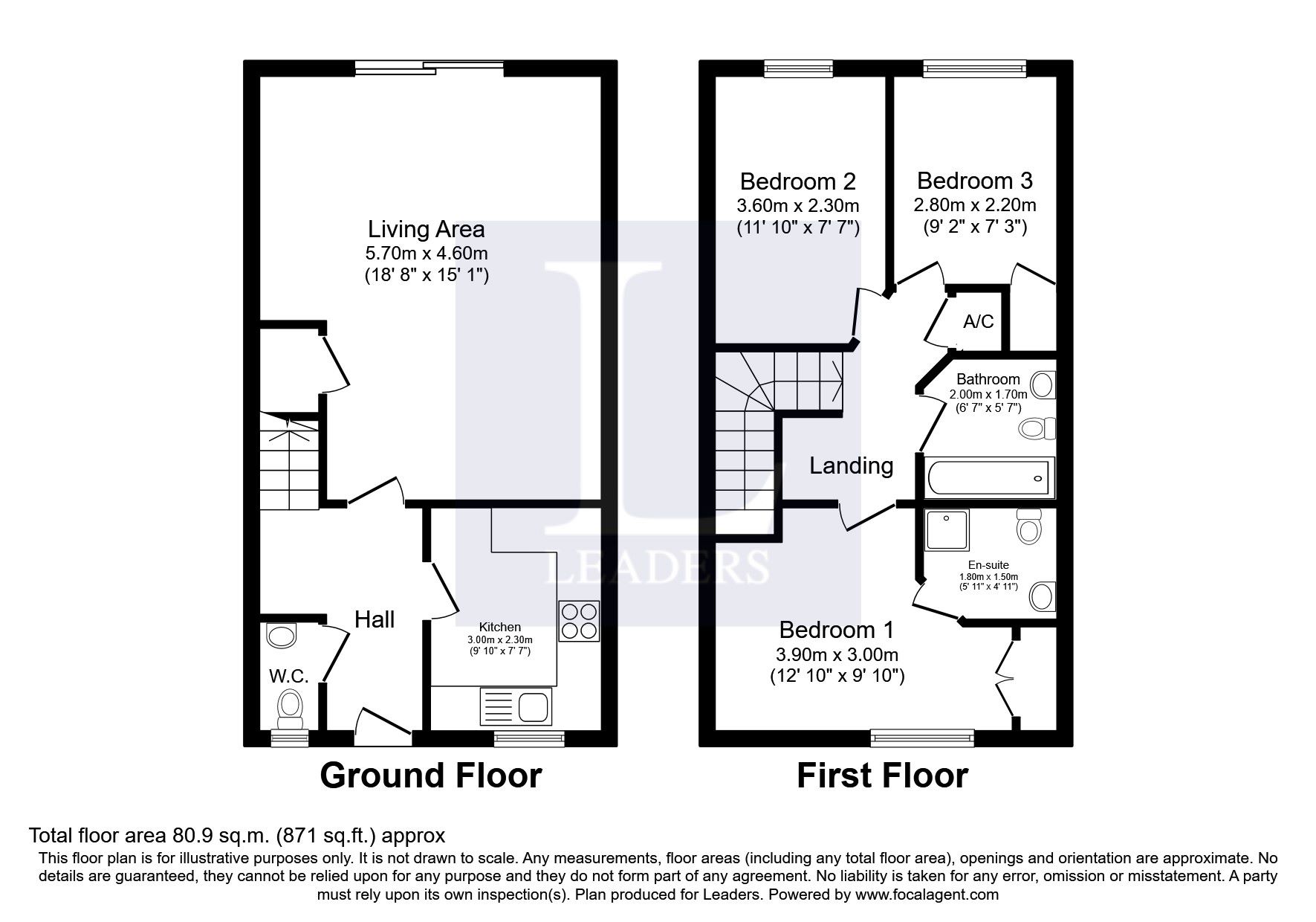 3 bedrooms, 1 with en-suite, bathroom
