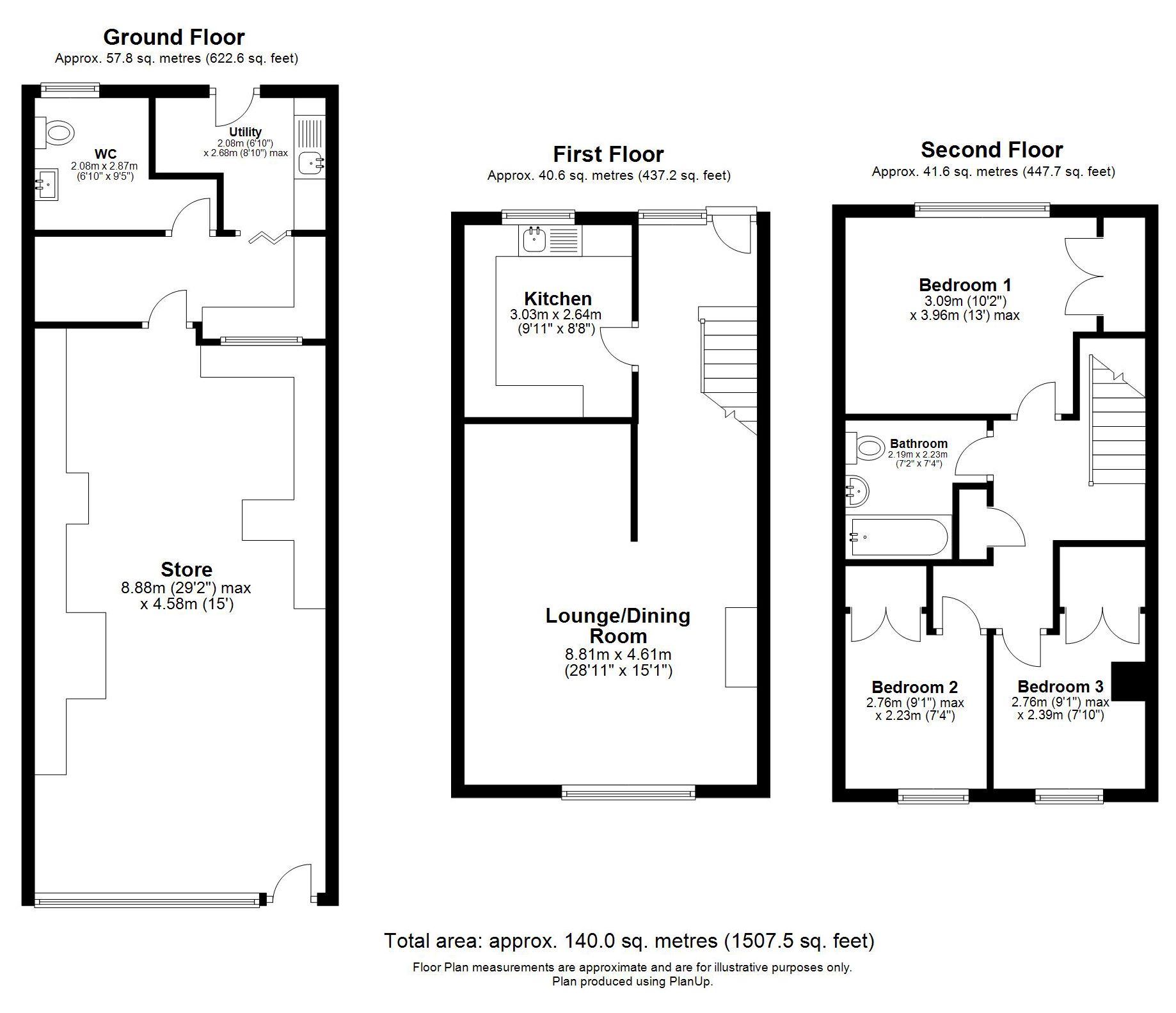 Entrance hall, living room, kitchen, 3 bedrooms, bathroom