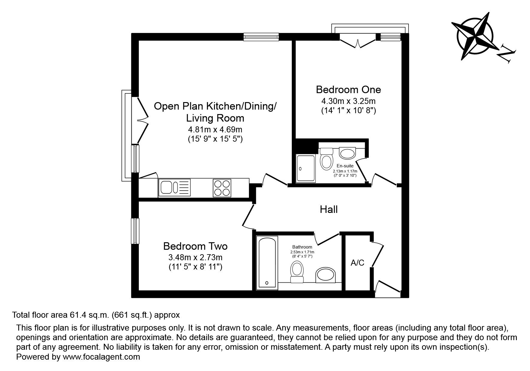 Lift access to fourth floor, entrance hall, open plan living room and kitchen, 2 bedrooms, bathroom and en suite