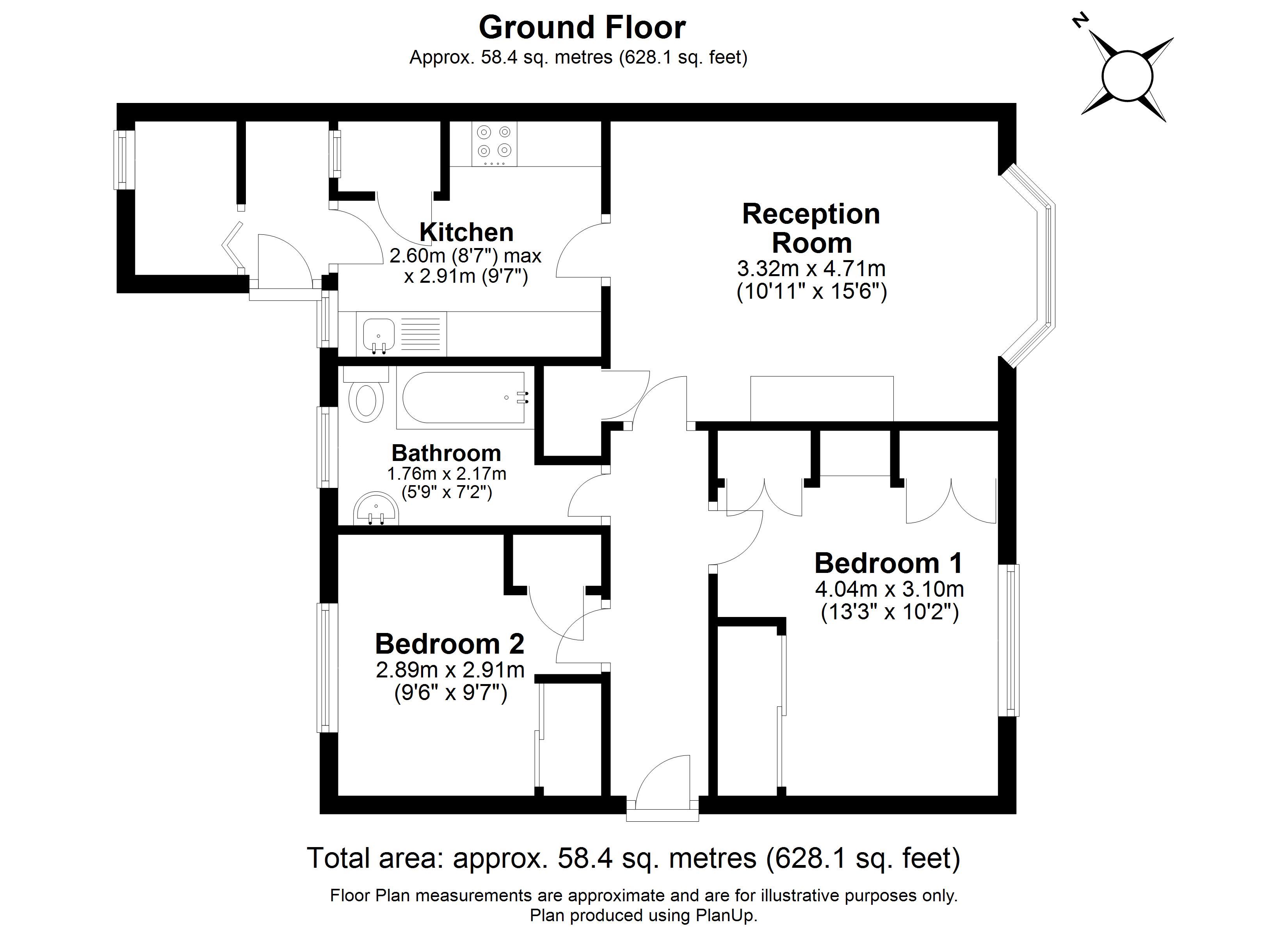 Entrance hall, living room, kitchen, 2 bedrooms, bathroom