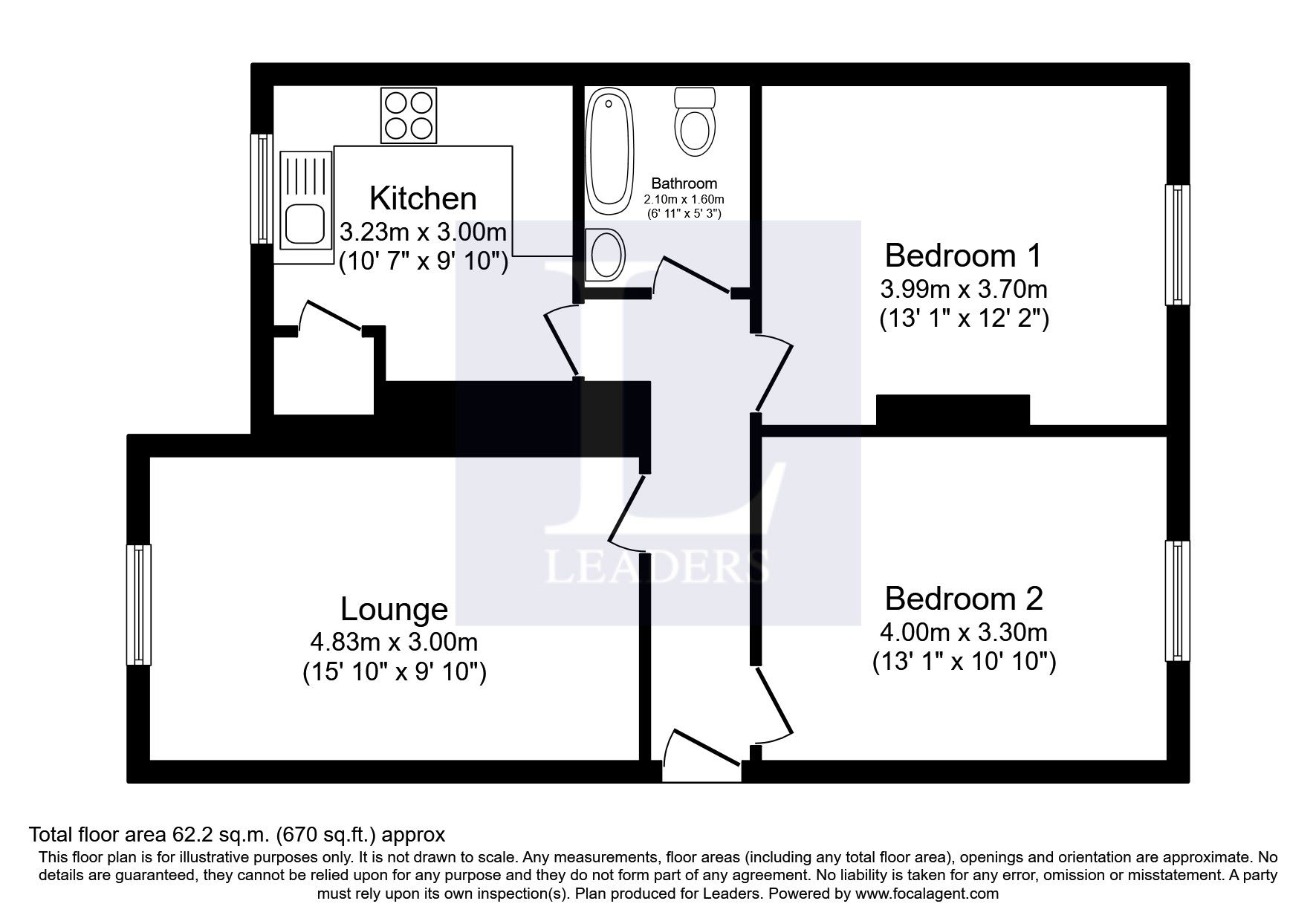Entrance hall, living room, kitchen, 2 bedrooms, bathroom.