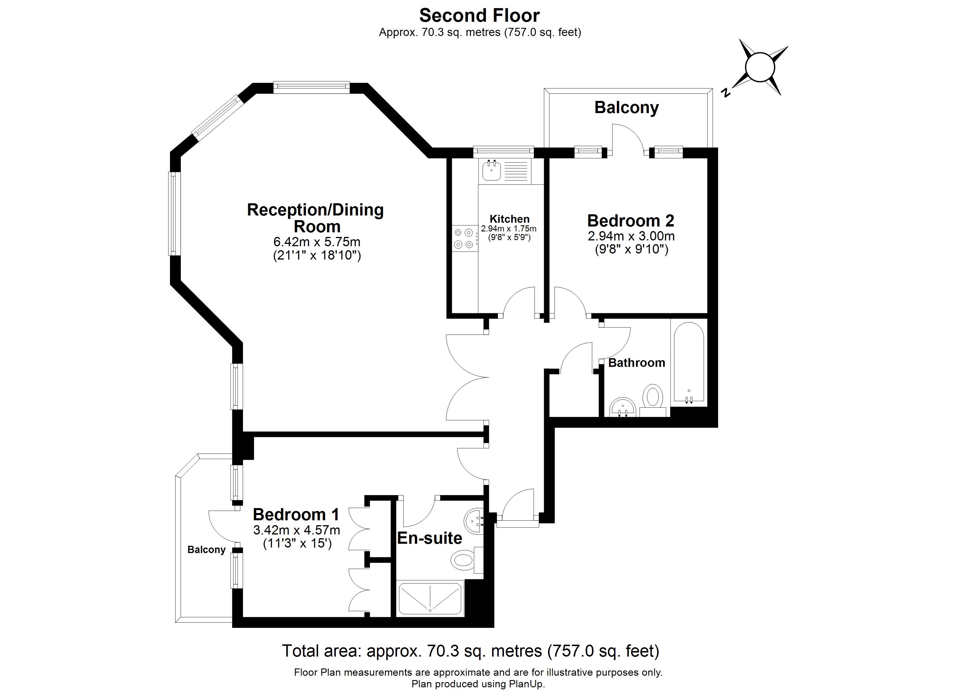 Entrance hall, living/dining room, kitchen, 2 bedrooms, ensuite to master, bathroom