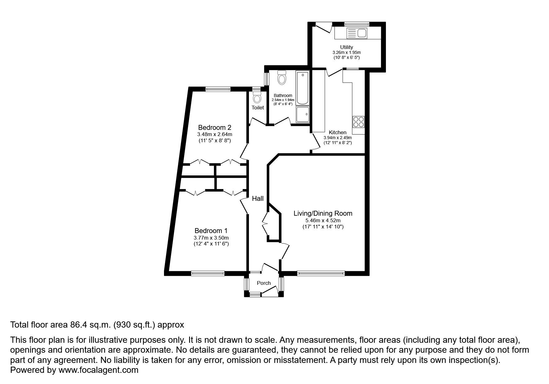 Ground Floor: Porch, entrance hall, living room, kitchen, 2 bedrooms, WC, bathroom, utility