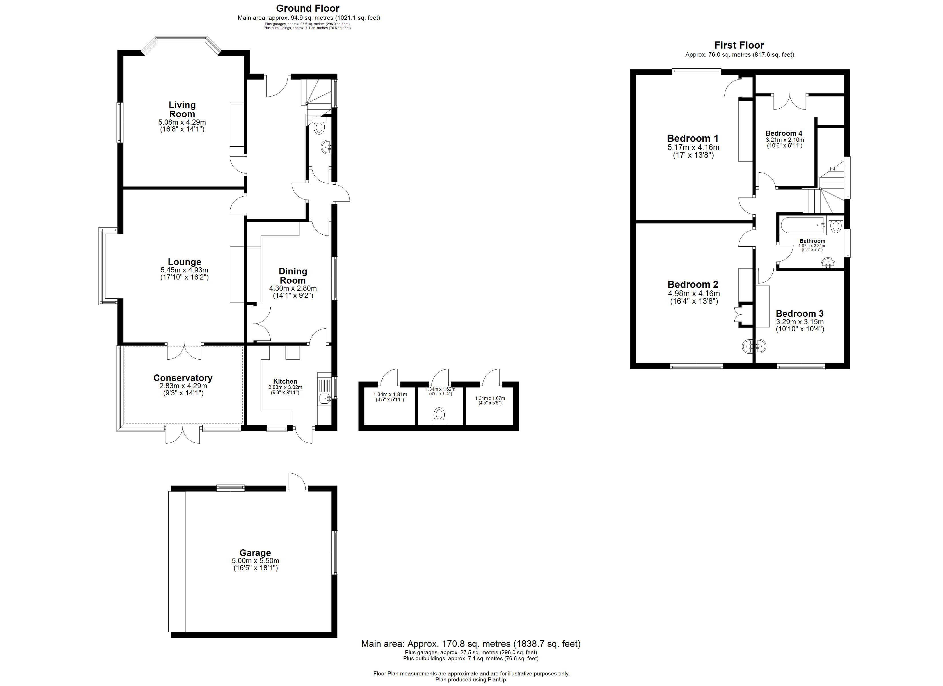 Front, side and rear gardens, 2 brick built storage outbuildings, gardener's WC, double width garage